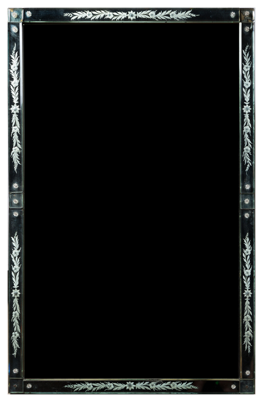 of vertical rectangular form, having an etched foliate border.
