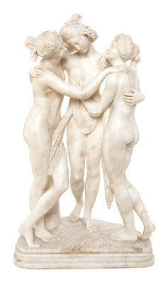 Three Graces, raised on a naturalistic base, apparently unsigned.