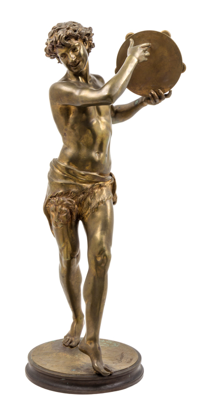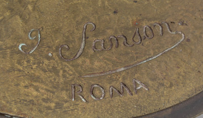 depicting a musician playing a tambourine, signed J. Samson Roma to the circular base.