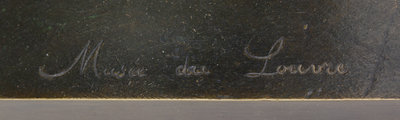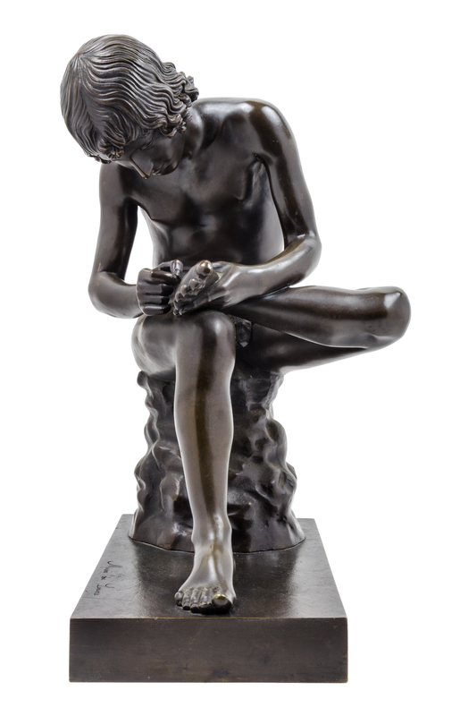 depicting a boy removing a thorn from his foot, marked Musee du Louvre to the base.