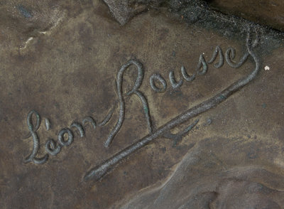 Defense du sol, the base mounted with a titled plaque that reads PAR L. ROUSSEL, PRIX DE CONCOURS / ECOLE DES BEAUX-ARTS. PARIS, and signed Leon Roussel.