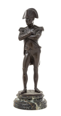 depicting Napoleon Bonaparte, signed illegibly and raised on a circular marble base.