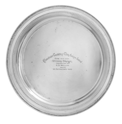 Edgeworth, the plate centered with an engraved inscription reading Allegheny Country Club Horse Show/ June 4-5-1926/ Officers Charger/ Presented by R. B. Mellon/ Won by/ Imp. Batchelor's Hope.