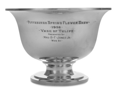 of circular form, centered with the engraving Pittsburgh Spring Flower Show / 1926 / Vase of Tulips / Presented by Mrs. B. F. Jones Jr.