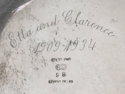 engraved Etta and Clarence 1909-1934 on the undersides, weighted.