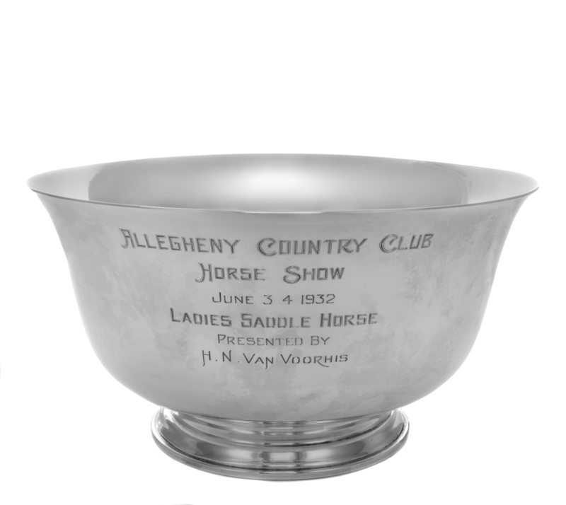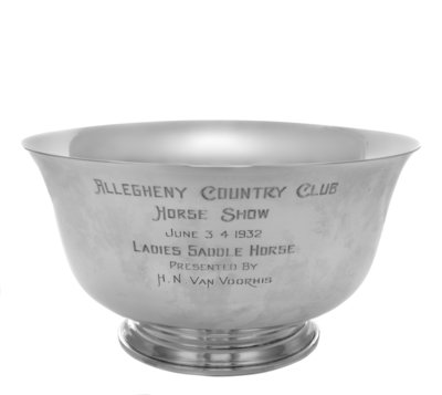 with engraved inscription Allegheny Country Club Horse Show Jun 3 4 1932 Ladies Saddle Horse Presented by H.N. Van Voorhis.