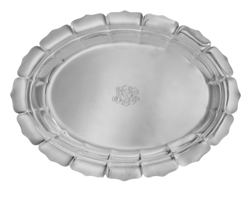 of oval form, having a scallped border and centered with the engraved monogram GSV.