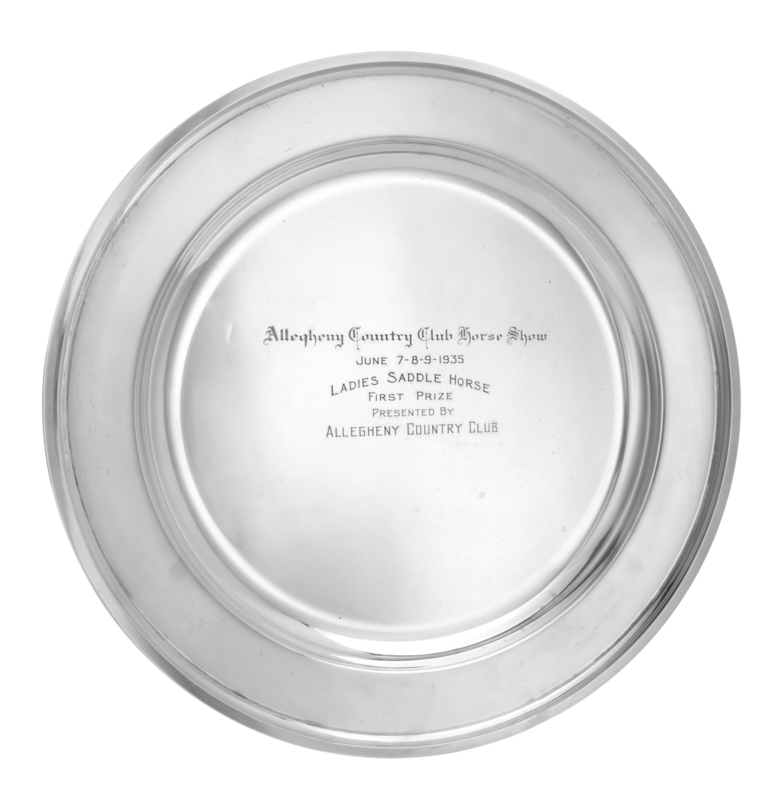 centered with the engraved inscription Allegheny Country Club Horse show/ June 7-8-9-1935/ Ladies Saddle Horse/ First Prize/ Presented by/ Allegheny Country Club.