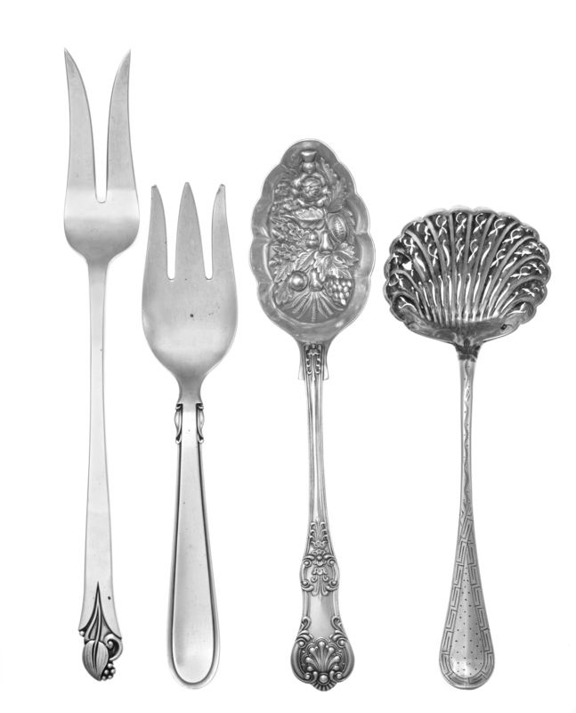 comprising a Danish serving fork, Cohr, an American serving fork and a French pierced serving spoon, Massat Freres, together with a silver-plate berry spoon.