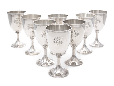 A Set of Eight American Silver Goblets