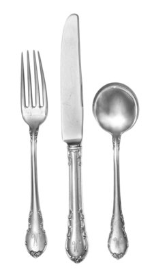 comprising:12 dinner knives5 dinner forks11 luncheon forks10 teaspoons7 soup spoons6 butter spreaders 15 serving pieces