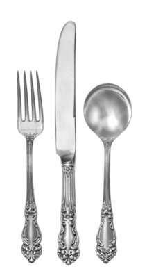 Amaryllis pattern comprising:12 dinner knives12 butter spreaders11 dinner forks12 dessert forks12 salad forks12 soup spoons23 teaspoons1 sugar scoop1 master butter knife