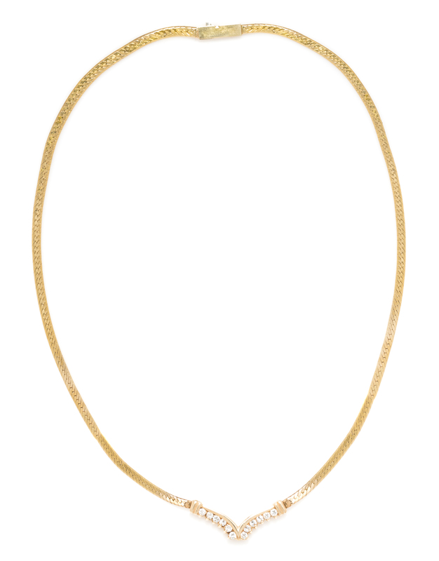 A Collection of 14 Karat Yellow Gold and Diamond Necklaces,