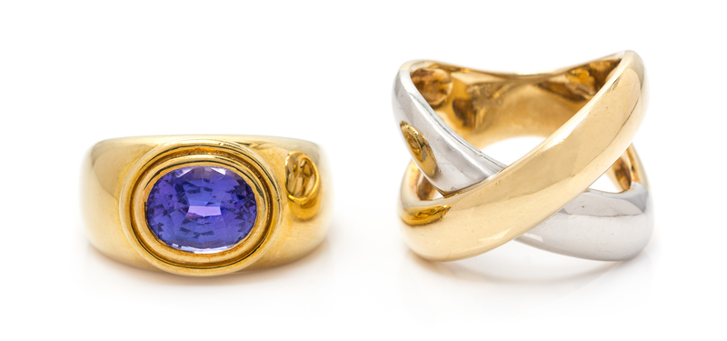 An 18 Karat Yellow Gold and Tanzanite Ring and Platinum and 18 Karat Yellow Gold Ring,