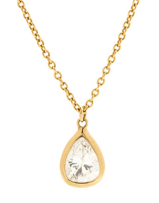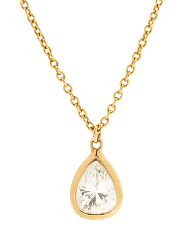 containing one pear shape brilliant cut diamond weighing approximately 0.58 carat, suspended from cable link chain.Stamp: PERETTI TIFFANY&CO 750.