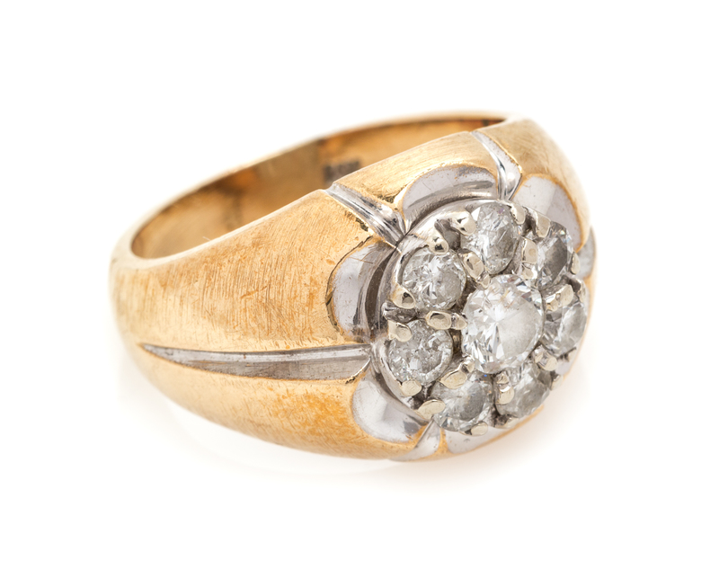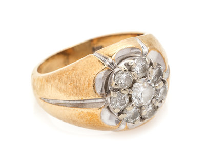 containing eight round brilliant cut diamonds.Stamp: 14K.