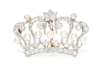 A Edwardian Platinum Topped Gold, Pearl and Diamond Crown Pendant/Brooch, Kirkpatrick & Co.,