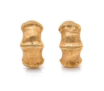 A Pair of 14 Karat Yellow Gold Bamboo Motif Earclips,