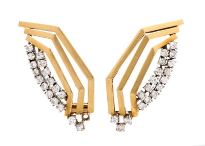 A Pair of Yellow Gold and Diamond Earclips,