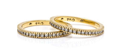 A Pair of 18 Karat Yellow Gold and Diamond Bands,