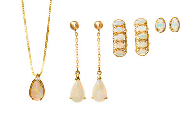 A Collection of 14 Karat Yellow Gold and Opal Jewelry,