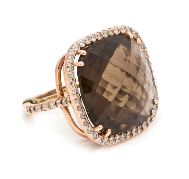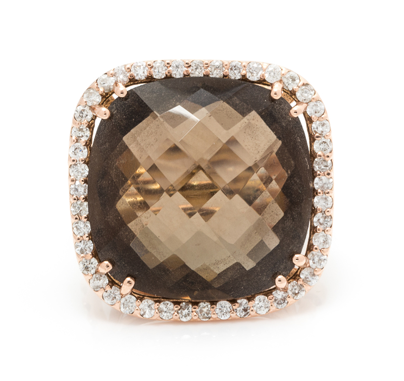 A Rose Gold, Smokey Quartz and Diamond Ring,