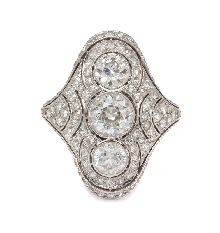 An Art Deco Platinum and Diamond Ring,