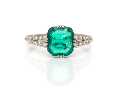 An Art Deco Platinum, Colombian Emerald and Diamond Ring, Tiffany & Co.,