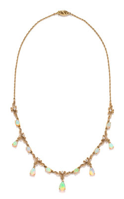 A 14 Karat Yellow Gold, Opal and Diamond Fringe Necklace,