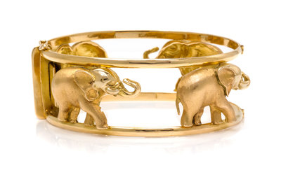 An 18 Karat Yellow Gold Elephant Motif Bangle Bracelet,