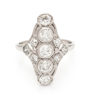 An Art Deco Platinum, White Gold and Diamond Ring,