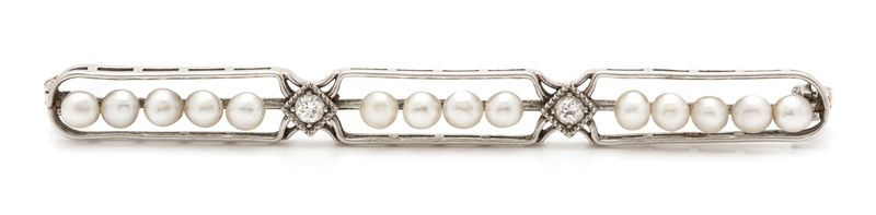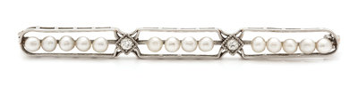 An Art Deco Platinum, Diamond and Seed Pearl Bar Brooch.