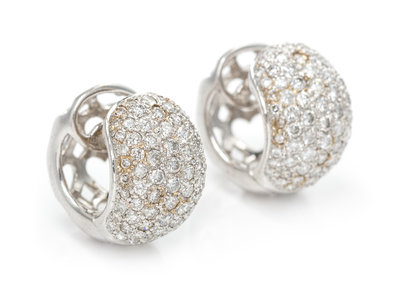 A Pair of 18 Karat White Gold and Diamond Hoop Earrings,