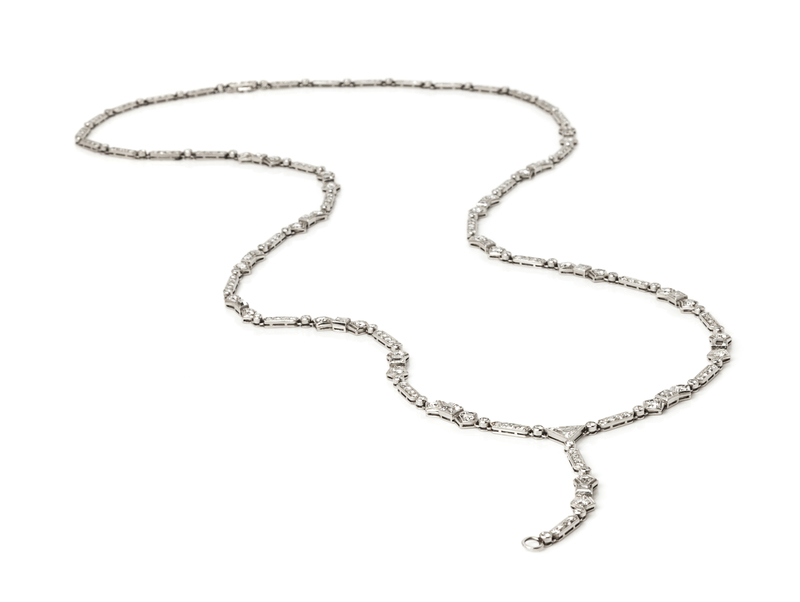 A Platinum and Diamond Longchain Lavaliere Necklace, Circa 1920,