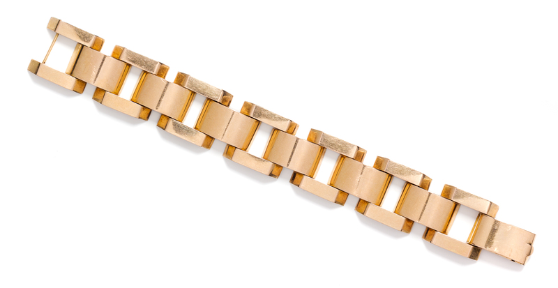 composed of angular and curvilinear links, the bracelet measuring approximately 21.00 mm wide.
