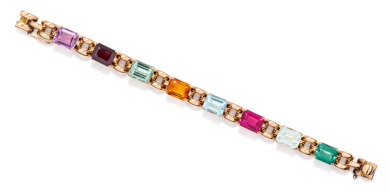 A Retro Rose Gold and Multi Gem Bracelet,