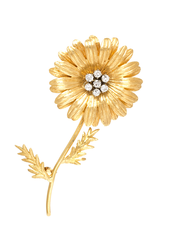 An 18 Karat Yellow Gold and Diamond Flower Brooch, Tiffany & Co., Italy, Circa 1950,