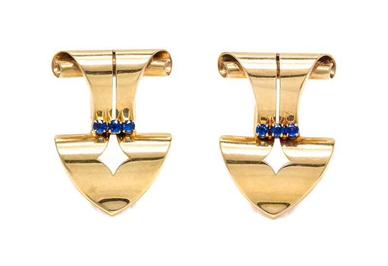 A Pair of Retro Yellow Gold and Sapphire Clip Brooches, Tiffany & Co.,
