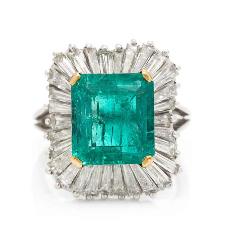 A White Gold, Emerald, and Diamond Ballerina Ring,