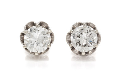 A Pair of White Gold and Diamond Stud Earrings,