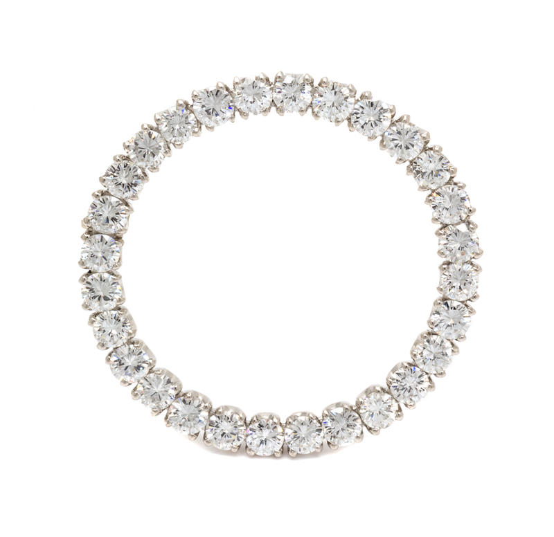 containing 28 round brilliant cut diamonds weighing approximately 3.92 carats total. Stamp: IRID PLAT.