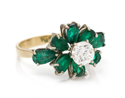 A Yellow Gold, Diamond and Emerald Ring,