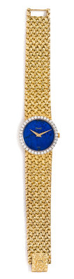 An 18 Karat Yellow Gold, Lapis Lazuli and Diamond Wristwatch, Piaget