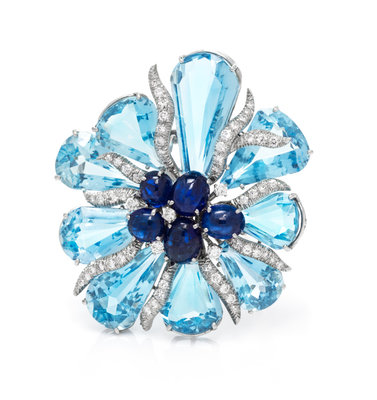 A Fine Platinum, Aquamarine, Sapphire and Diamond Brooch, Julius Cohen,
