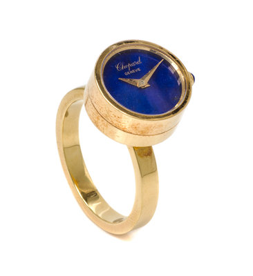 A 18 Karat Yellow Gold and Lapis Lazuli Watch/Ring, Chopard,