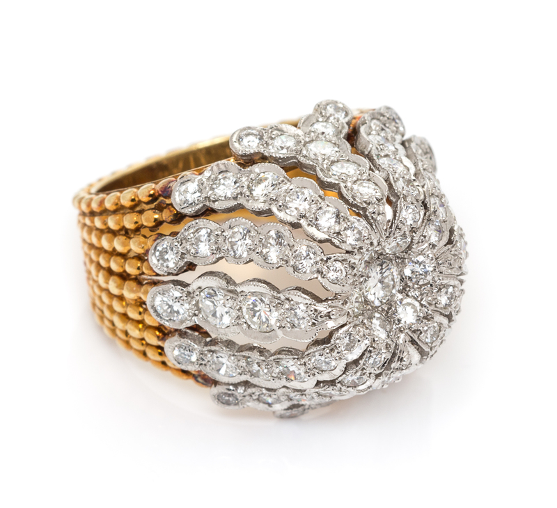 A Platinum, 18 Karat Gold and Diamond Bombe Ring, Cellino,