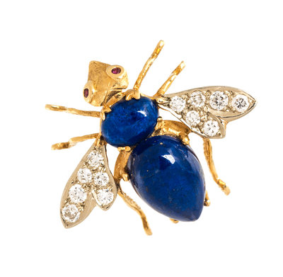 An 18 Karat Yellow Gold, Lapis Lazuli, Diamond, and Ruby Bee Brooch,