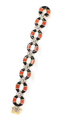 An 18 Karat Gold, Diamond, Onyx and Coral Bracelet,