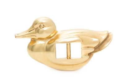 in a duck motif, measuring approximately 72.00 x 41.00 mm.Stamp: B. KIESELSTEIN-CORD 1981 D USA G14KT 555 1982.
