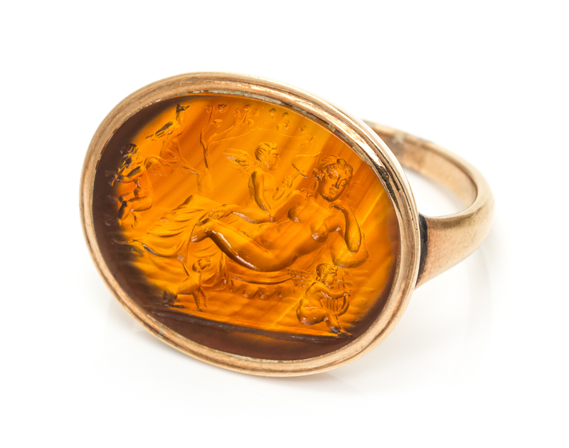 A Rose Gold and Citrine Hermaphrodite Intaglio Ring,